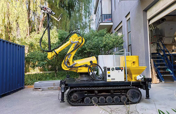 Pstone2是一款可自行移动的机器人式建筑3D打印智能建造设备,由打印设备和供电设备两部分组成,两部分均为履带式底盘驱动。打印设备安装了调平支腿系统,支持一键调平功能。喷头安装了激光测距装置,可实现喷头高度实时监测功能,方便打印前调试。控制系统完善高效,操作界面简洁明了,同时安装智能人机交互设备,支持远程状态监视及远程打印控制。